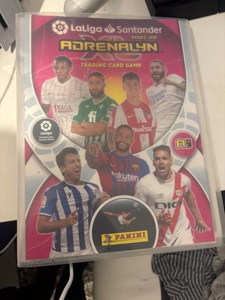 Se venden dos álbumes de cromos de Adrenalyn LaLiga Santander. - Un álbum está a mitad de su capacidad. - El otro álbum está casi lleno.