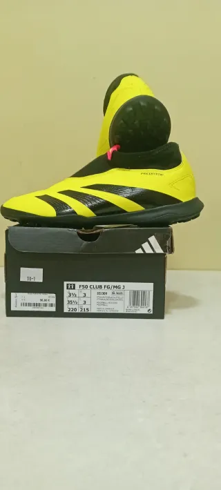 Botas de fútbol Adidas Predator. Nunca se han usado como se ve. NUEVAS, EN SU CAJA ORIGINAL. - Color amarillo fosforito y negro. - Modelo F50 CLUB FG/MG 3. - Talla 3.5 UK / 35.5 EU. - Longitud del pie 220 mm. - Longitud de la plantilla 215 mm.