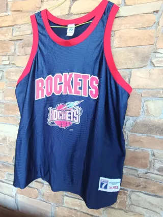 Réplica vintage de los Houston Rockets de la NBA, probablemente de finales de los años 90. Medidas incluídas en las fotos.