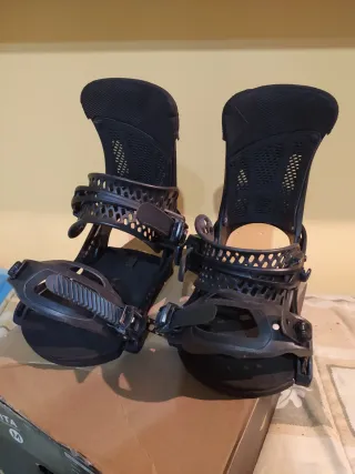 Fijaciones de snowboard Burton Malavita en talla M. - Color negro. - Diseño abierto en las correas. - Base acolchada para mayor comodidad.