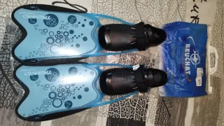 Aletas de piscina de color azul y negro. Perfectas para nadar y entrenar. Están usadas pero en buen estado. - Diseño ergonómico. - Suela con relieve antideslizante. - Talla 40