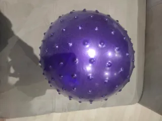 Pelota de pilates morada con un diseño texturizado. - Superficie con púas para un mejor agarre. - Color morado brillante.