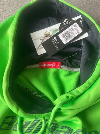Sudadera Bullpadel con capucha y bolsillo frontal, en color verde brillante. - Logo de Bullpadel y TENNIS CLUB BADALONA estampado en el pecho. - Capucha con cordones. - Bolsillo tipo canguro.
