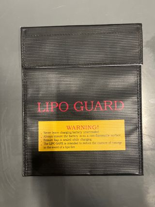 Bolsa de seguridad LIPO GUARD para baterías. - Fabricada en material resistente. - Cierre de solapa. - Diseñada para reducir riesgos en caso de incendio de lipo.