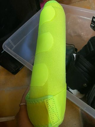Protectores de tela en un llamativo color verde fluorescente. Cuentan con un cierre de velcro para un ajuste seguro. SIN ESTRENAR. Talla L los dos, los de detras igualmente son un poco mas grandes. Vienen los 4