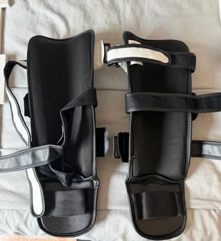 Espinilleras de la marca Leone en color negro. - Cierre con velcro y hebillas. - Diseño ergonómico para mayor protección. - Banda superior con logo Leone 1947.