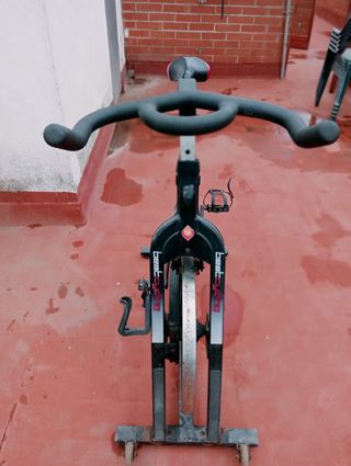 Bicicleta estática de gimnasio, ideal para entrenamientos en casa. - Diseño robusto y estable. - Asiento ajustable en altura. - Pedales con agarre. - Rueda de inercia para resistencia.