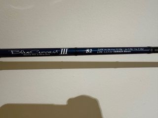 Caña de spinning Yamaga Blanks Blue Current III 82. - Modelo: Blue Current III 82. - Tipo: Spinning. - Marca: Yamaga Blanks. tiene una pequeña rayadura como se aprecia en la foto.