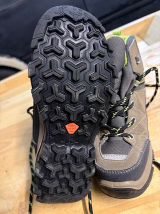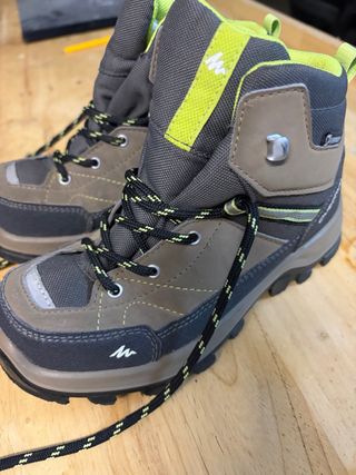 Botas de montaña para niños, perfectas para senderismo y actividades al aire libre. - Diseño resistente y cómodo. - Cierre con cordones. - Suela adherente para mayor seguridad. - Combinación de colores gris, marrón y verde lima. SIN ESTRENAR