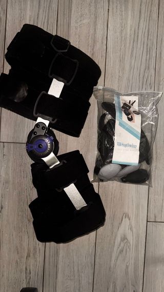 Rodillera ortopédica ORLIMAN ,diseñada para brindar soporte y estabilidad.Flejes adaptables. Bloqueo hasta 120 grados. Recomendada para después de operación o lesión de rodilla ( ligamentos, menisco...). Con instrucciones y embalaje original. Cómo nueva. - Estructura ajustable con correas de velcro. - Bisagras laterales para mayor movilidad controlada. - Almohadillas acolchadas para comodidad.