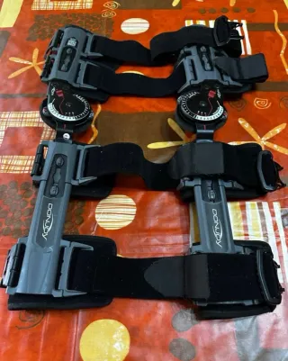 Rodillera ortopédica articulada DonJoy para rodilla derecha (órtesis/brace de alta gama). Precio nuevo aprox. 440€. Sin desgaste, muy poco uso y en estado impecable (ver fotos). Correas y acolchados perfectos, cierres firmes. Aporta gran estabilidad y soporte para la rodilla, ideal para rehabilitación o para quien necesita sujeción extra. Ajuste/talla: ajustable con correas. La usaba una mujer de aprox. 1,58 m y 55 kg. Incluye documentación (según fotos). Entrega en mano o envío por Wallapop