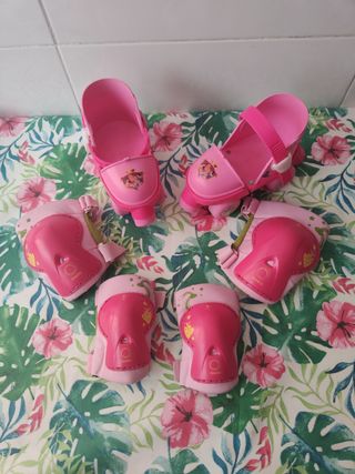 Patines Pepa Pig, con rodilleras y coderas. De la talla del 24 al 28.