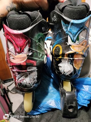 patines en linea nuevos solo usados una vez ,están tuneados costaron 130 € las ruedas se encienden regalo rodilleras coderas otras ruedas de repuesto y bolso transporte Número 41