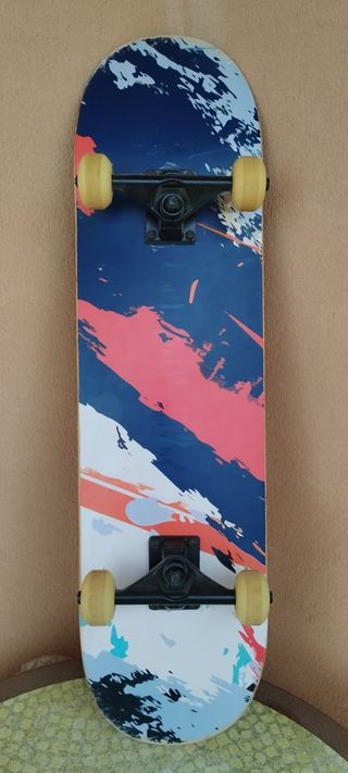 Se vende tabla de Skate Oxelo de dimensiones 80x21 cm. junto a su mochila especial para transportarla y las protecciones adecuadas para su uso (rodilleras, coderas y muñequeras). Sin uso.