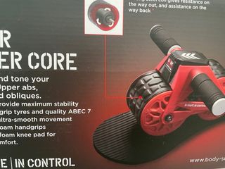 Rueda para ejercicios abdominales CORE. Ayuda a tonificar el abdomen y los oblicuos. - Proporciona máxima estabilidad. - Ruedas con agarre y rodamientos ABEC 7. - Movimiento ultra-suave. - Empuñaduras de espuma. - Incluye rodillera de espuma para mayor confort.
