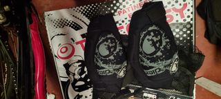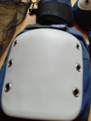 Rodilleras y coderas Millen División. Talla S. Color azul/negro. Nunca se han usado. Suciedad del armario. La funda de malla tiene dos rotos.