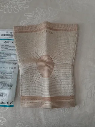 Rodillera elástica de la marca Teyder en color beige. Diseñada para ofrecer soporte y comodidad. - Material elástico. - Color beige. - Talla L.