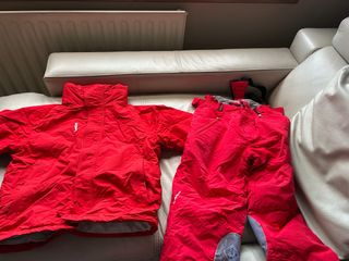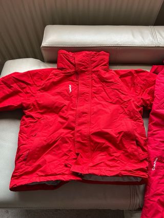 Conjunto de esquí para niño/a, incluye chaqueta y pantalón en color rojo. - Talla 10. - Marca Quechua en la chaqueta. - Cierre de cremallera en la chaqueta. - Bolsillos laterales en la chaqueta El pantalon tiene rodilleras cuero infantiles
