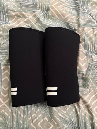 Pack de dos rodilleras de compresión en talla M. Diseñadas para ofrecer soporte y comodidad. - Tejido elástico y transpirable. - Diseño ergonómico. - Bandas de sujeción ajustables.