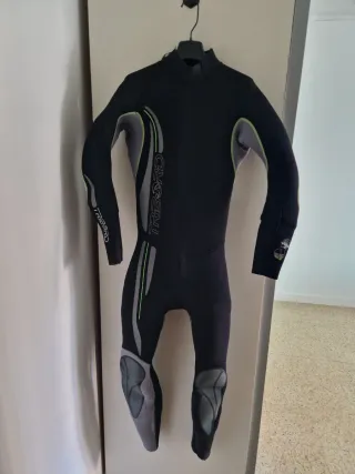 Neopreno de la marca Tribord, ideal para deportes acuáticos. - Grosor de 5mm. - Talla XS. - Diseño en negro con detalles grises y lima. - Rodilleras reforzadas.