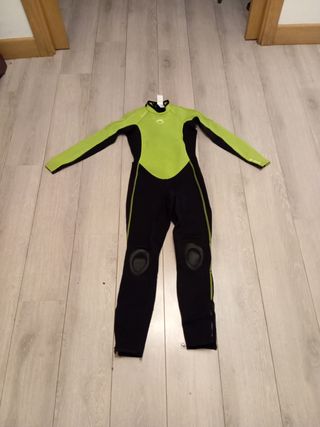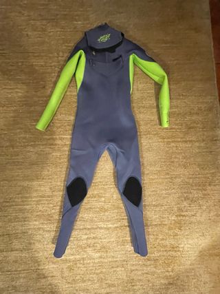 Neopreno para niño de 14 años, de 2mm de grosor. Está en buen estado. - Color verde lima y negro. - Cremalleras funcionales. - Rodilleras reforzadas.