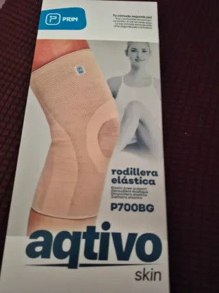 Rodillera elástica de la marca Prim, modelo Aqtivo P700BG. - Diseñada para ofrecer comodidad y soporte. - Tejido elástico y transpirable. - Color beige.