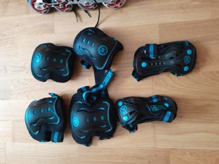Juego de protecciones para patinaje Oxelo, en buen estado. Incluye dos rodilleras, dos coderas y dos muñequeras. Ideales para principiantes. -Solo se han usado una vez - Diseño cómodo y ligero. - Material resistente y duradero. - Fáciles de poner y quitar. - Perfecto para niños y adultos.