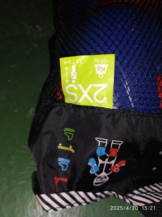 Neopreno de manga larga para niño de la marca Olaian. Talla 133-142 cm (10 años) - Color azul marino y detalles en azul. - Cierre con cremallera. - Rodilleras reforzadas. - Cremalleras en los tobillos.