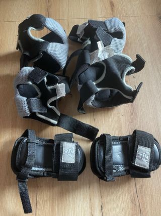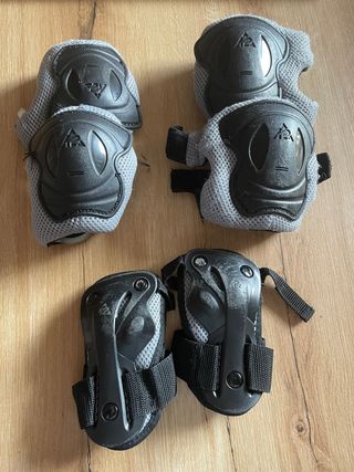 Juego de protecciones Powerslide en buen estado. Incluye dos rodilleras, dos coderas y dos muñequeras. Ideales para patinaje o ciclismo. - Diseño negro con detalles grises. - Ajuste cómodo y seguro. - Material resistente y duradero. Talla " S"