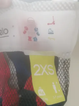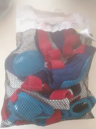 Juego de protecciones Oxelo para patines, talla XS. Ideal para niñ@s de 6 a 10 años (25-50kg). Incluye 3 protecciones: rodilleras, coderas y muñequeras. Están nuevos, sin usar y se presentan en una práctica bolsa de rejilla para su transporte y almacenamiento. - Talla XS - Para niños de 6 a 10 años - Peso: 25-50 kg - 3 protecciones: rodilleras, coderas y muñequeras