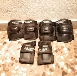 Están perfectos, poquísimo uso. Casco,coderas y rodilleras. Extensibles desde la talla 34 a la 36. Marca Oxelo todo el conjunto. Pregunta por separado.Comprado en decathlon. El precio es por todo el lote.