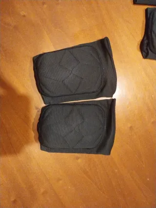 Par de rodilleras deportivas de color negro. Son cómodas y se ajustan bien. Son dos pares - Tejido elástico. - Acolchado en la zona de la rodilla.