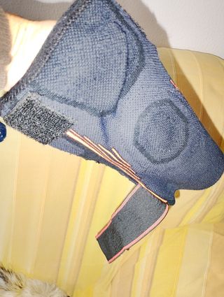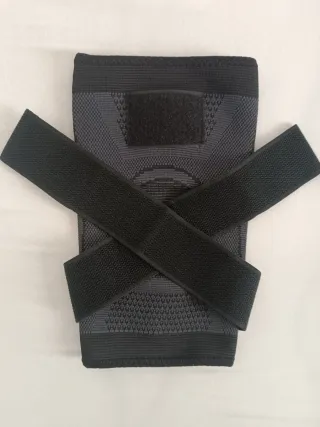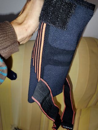 Rodillera deportiva en color negro y azul. Ideal para proteger y dar soporte a la rodilla durante la actividad física. Usada un par de veces - Diseño cómodo y adaptable. - Material resistente y duradero. - Fácil de poner y quitar. - Talla única.