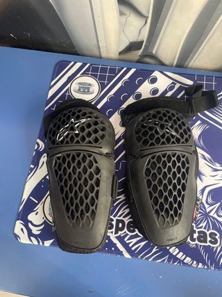 Par de rodilleras Alpinestars en color negro. - Diseño con rejilla para ventilación. - Cierre de velcro ajustable. - Marca Alpinestars visible.