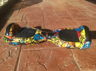 Patinete eléctrico con un diseño llamativo y colorido de graffiti. Le falta el cargador, de ahí su precio.