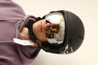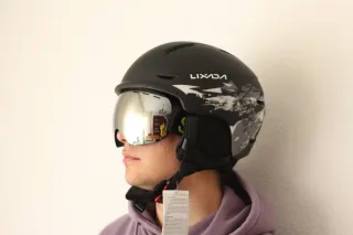 Casco de esquí LIXADA con diseño moderno y detalles gráficos. - Color negro mate. - Cierre de hebilla ajustable. - Orejeras acolchadas.