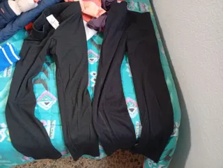 Conjunto de ropa para esquiar, ideal para mantenerse abrigado en la montaña. Incluye un pantalón con tirantes y dos prendas térmicas (jersey y pantalón). Todo de Decathlon. Hay 2 conjuntos iguales. - Pantalón de esquí negro con tirantes ajustables, talla 5 años. - Prenda térmica de manga larga en color negro, talla 8 años. - Pantalón térmico en color negro, talla 6 años. El precio es por conjunto de 3 piezas.