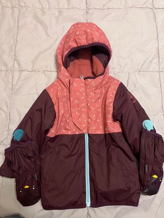 Chaqueta de esquiar decathlon talla 5 años ( 105-114 cm) y mono pantalón talla 3-4 años (91-104).