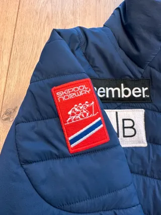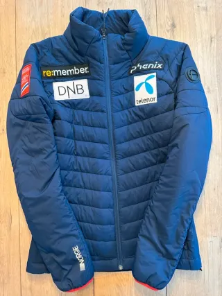 PHENIX NORWAY NORGE. PRIMALOFT DEL EQUIPO NORUEGO DE ESQUI. Presenta varios logos de patrocinadores. - Logo de Phenix en la manga. - Logo de Telenor en el pecho. - Logo de DNB en el pecho. - Logo de re:member en el pecho. - Bandera de Noruega en la manga. - Inscripción NORGE en la manga. Talla: S Color: Azul navy Venta de ropa súper exclusiva on line. Material Descente Poc Head Rossignol Atomic Haglöfs kappa Colmar Spyder Mammut Bogner.