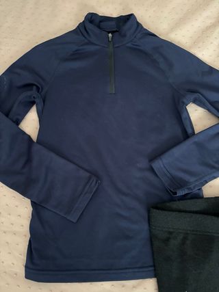 Conjunto de ropa interior térmica para esquiar, ideal para niños de 8 a 10 años. Incluye 3 camisetas de manga larga, un pantalón interior y forro polar talla 12 ajustado. Poco uso. Una temporada. Etiquetas cortadas. Wedze. Poliester secado rapido
