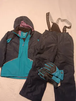 Conjunto de pantalón y chaqueta para la nieve, talla 10 años, marca Wedze de Decathlon. También incluye manoplas talla 10.