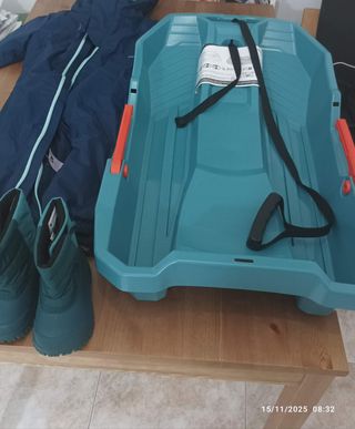 - Traje de nieve para niño o niña de 2 años (90 cm). Color naranja, forro polar azulón por dentro. Se abre totalmente mediante cremallera. Marca Wedze (Decathlon). - Gorro de lana a juego. - Guantes azules talla 3-4 años. En mi perfil puedes ver otras opciones de guantes (tallas y colores ). Puedes elegir otro modelo. Está todo impecable. Se pueden comprar las piezas también por separado (ver mi perfil)