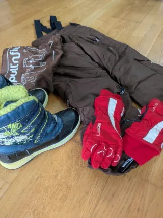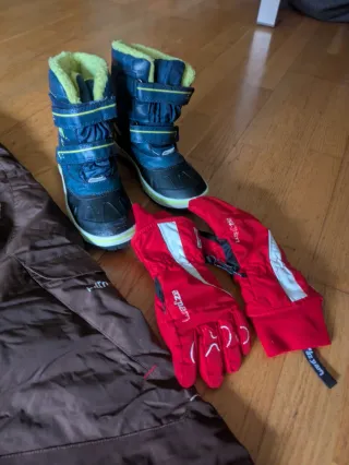 Lote Ropa Nieve Niños Botas y Guantes talla 11-12