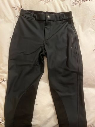 Pantalones de equitación negros con detalles de agarre. - Color negro. - Tejido técnico. - Zona de agarre en rodillas. camiseta de montar y jersey a conjunto