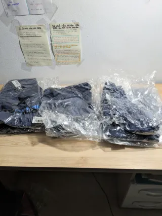 Pack de ropa deportiva retro del RC Deportivo. 550€. Hecho el pedido justo el 12-12-2025, antes de que todo el stock se agotase. CHAQUETAS TALLA XXXL, PANTALON TALLA XXL. Precios por separado: - Chaqueta deportiva roja con detalles blancos y negros. XXXL. (200€) - Chaqueta deportiva blanca con detalles en azul marino y azul. XXXL. (200€) - Pantalón deportivo azul marino con detalles en blanco y azul. XXL. (180€)