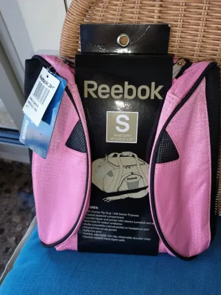 Bolsa de deporte Reebok de tamaño pequeño en color rosa. - Material: Poliéster Rip Stop 600 Denier. - Compartimento principal con cremallera. - Bolsillo lateral con cremallera para calzado o ropa húmeda. - Malla lateral para ventilación. - Bolsillo interior para dispositivos multimedia con salida para auriculares. - Bolsillo interior personal. - Estampado reflectante. - Correa de hombro acolchada, ajustable y desmontable. - Tiradores de cremallera metálicos.