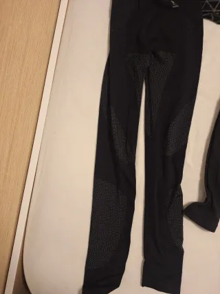 Conjunto de 3 pantalones y una camiseta termico para niños de 10 a 12 años. - Camiseta blanca con logo New Balance. - Pantalón largo negro con logo . - Mallas térmicas negras con Climacontrol PLUS. - Mallas azules de lidl Todo 7e