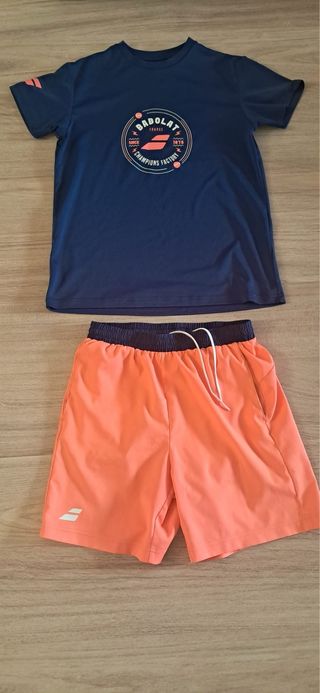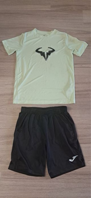 Conjunto de ropa deportiva para tenis, ideal para niños de 12 a 14 años. - Camiseta y pantalón corto Babolat talla 12/14 años - Camiseta Nike Rafa Nadal S 147cm/158cm talla L infantil - Pantalon Joma S 12- 14 años - Pantalón corto Lotto L 12-14 años El precio es del lote completo de las 5 prendas.