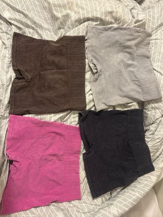 Conjunto de cuatro prendas deportivas de la marca Shein. Talla XL - Composición: 90% Poliamida / 10% Elastano. - Diseño texturizado. - Cintura elástica acanalada.