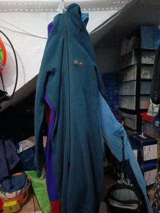Conjunto de ropa deportiva para la práctica de espeleología. Incluye varias prendas de abrigo. - Mono azul marino nuevo a estrenar marca ALP Desingn, talla 46 - Mono Grifones, morada y rojo simas + frías. - Mono azul claro, cuevas más calidas